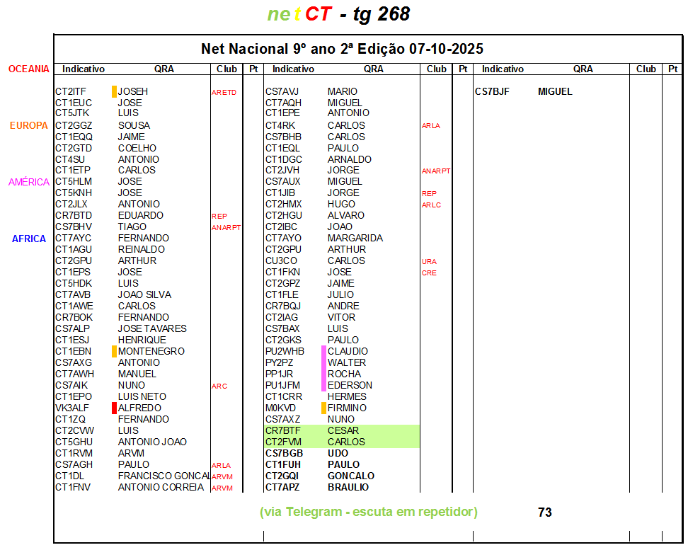 Iremos também manter as ‘Selfies’, tenham atenção aos requisitos, deve se poder ver o radio em operação no TG 268, a criatividade e a qualidade são o mais importante. Enviem as vossas Selfies, até as 12h do dia imediato à netCT para o endereço team.dmr.pt(at)gmail.com
