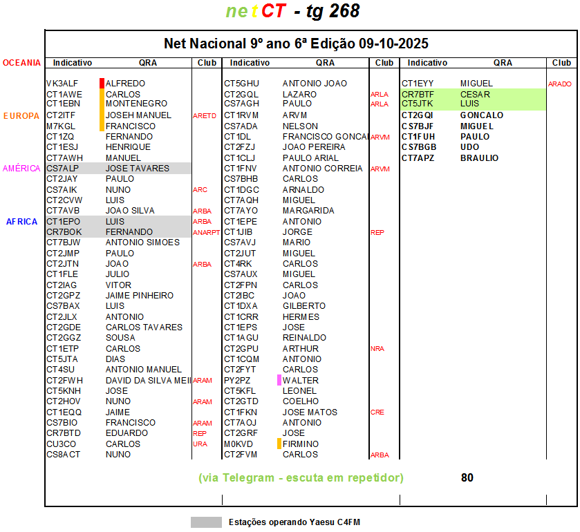 Desde a  5ª sessão faremos menção ao sistema usado na net CT, seja DSTAR ou C4FM ou ainda Tetra.