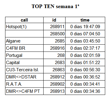 Nesta sessão 3 utilizadores usaram equipamento Yaesu C4FM, 1 através do repetidor C4FM do Arestal e 2 através de hotspot pessoal.