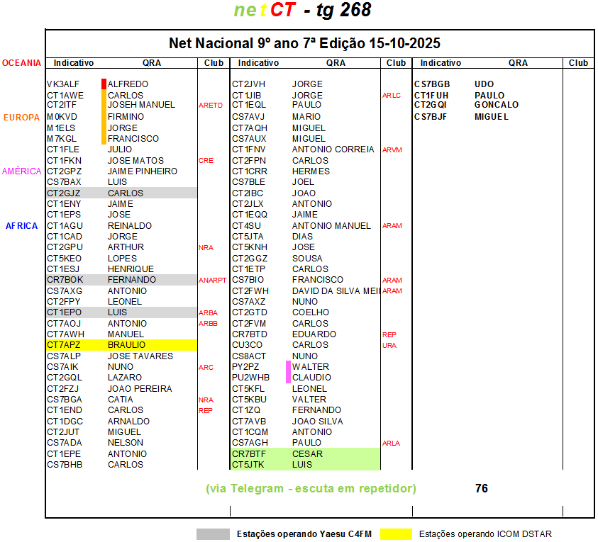 Nesta sessão 3 utilizadores usaram equipamento Yaesu C4FM, 1 através do repetidor C4FM do Aresta.