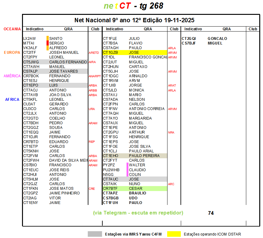 Nesta sessão 5 utilizadores usaram equipamento Yaesu C4FM, 4 através do repetidor C4FM do Arestal e 1 via hotspot. 1 utilizador usou ICOM DSTAR.