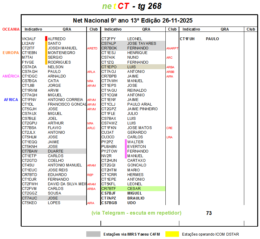 Nesta sessão 5 utilizadores usaram equipamento Yaesu C4FM, 4 através do repetidor C4FM do Arestal e 1 via hotspot.