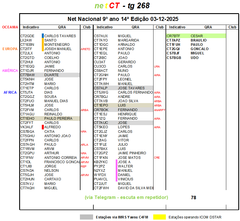 Nesta sessão 6 utilizadores usaram equipamento Yaesu C4FM, 4 através do repetidor C4FM do Arestal e 2 via hotspot.
