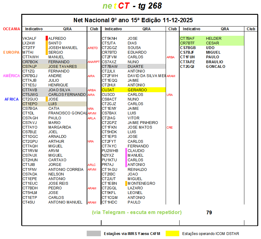Nesta sessão 6 utilizadores usaram equipamento Yaesu C4FM, 4 através do repetidor C4FM do Arestal e 2 via hotspot.