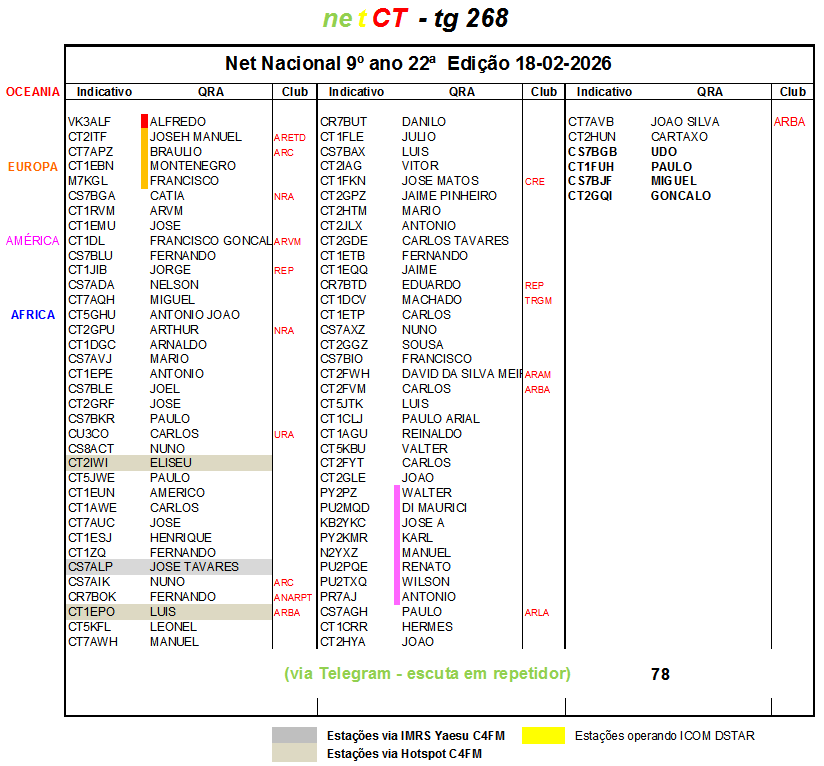 Nesta sessão 3 utilizadores usaram equipamento Yaesu C4FM, 1 através do repetidor C4FM os restantes via Hotspot pessoal.