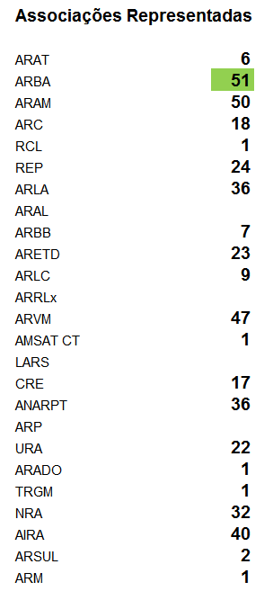 Nesta sessão 17 utilizadores fizeram representar a sua associação. (por lapso foram apagados do log no entanto foram adicionados ao log das Associações)