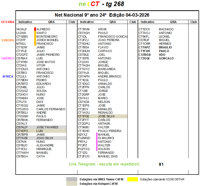 Nesta sessão 4 utilizadores usaram equipamento Yaesu C4FM, 2 através do repetidor C4FM os restantes via Hotspot pessoal.